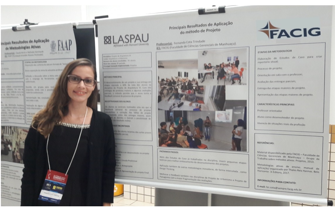 No dia 30/03/2017 o evento tratou de assuntos como; o Ranking na Educação, a Formação de professor e mostra de experiências onde mais de 100 professores apresentaram seus trabalhos sobre a aplicação de metodologias ativas. As professoras da FACIG apresentaram, em banner, as metodologias aplicadas em suas disciplinas e os resultados alcançados por seus alunos. A professora Tauana levantou o tema sobre a integração horizontal por meio da utilização da metodologia ativa baseada em projetos, apresentando o trabalho dos alunos do segundo período de Engenharia Civil; a professora Fernanda Franklin em seu trabalho, expôs seus resultados da aplicação do método Pliker em sala de aula sua facilidade e os principais resultados no curso de Direito, enfatizando a importância das metodologias ativas online; e a Professora Fernanda Cota apresentou adaptações na metodologia de Projetos voltada para a Arquitetura e Urbanismo, com foco nas etapas avaliativas do projeto.