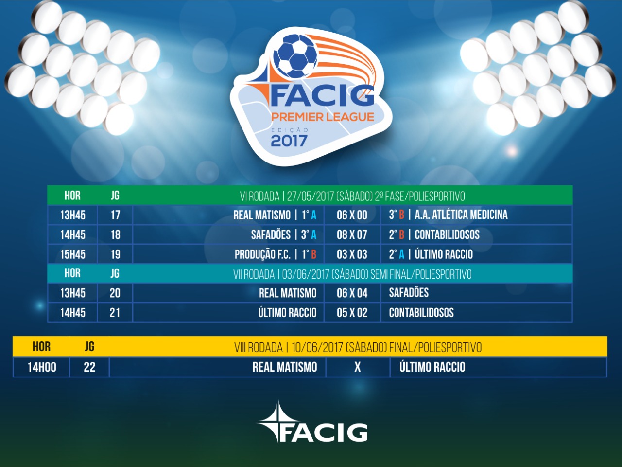 Próximo Final de Semana, FINAL da FACIG PREMIER LEAGUE 2017 !!
