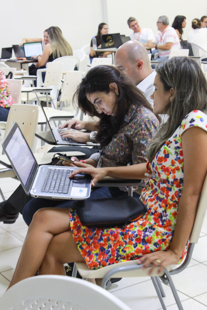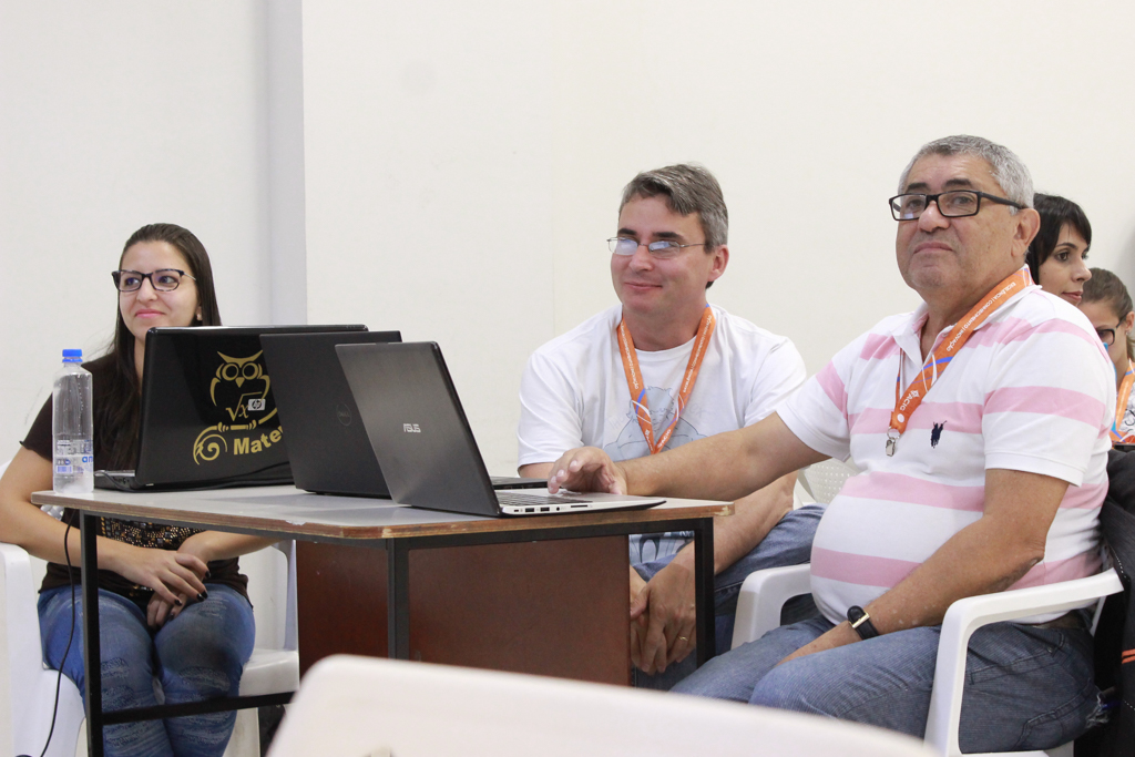 Durante a fala dos dois professores, os presentes puderam acompanhar ativamente o passo a passo da montagem e execução tanto do aplicativo quanto da metodologia.