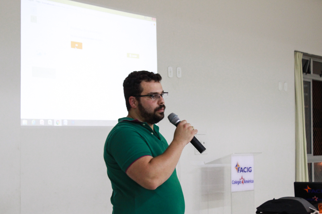 “Tecnologia na Educação” foi a temática do segundo dia de capacitação realizado pela FACIG no dia 02 de fevereiro de 2018. Desde as primeiras salas de aulas gregas, passando pela invenção do quadro negro, até a chegada do projetor de transparências, da fotocopiadora, do videocassete e do data-show, o professor sempre teve o foco de sua aula na apresentação da informação. Atualmente, com a disseminação de computadores, celulares e de programas interativos, o desafio atual passou a ser como acessar essa informação.