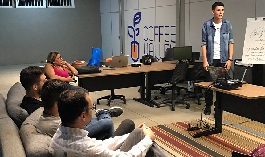 Os participantes foram questionados se possuem criatividade, fator este que gerou dúvidas, mas que com o final da palestra os mesmos já tinham a resposta. A aula foi dinâmica e aconteceu no ambiente agradável do Coffee Valley, a interação foi grande entre convidados e alunos, onde se conseguiu sanar muitas dúvidas e compartilhar experiências.