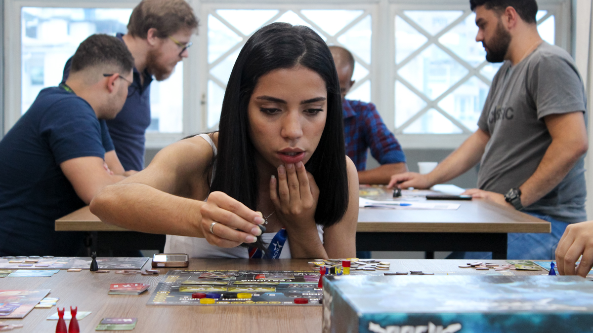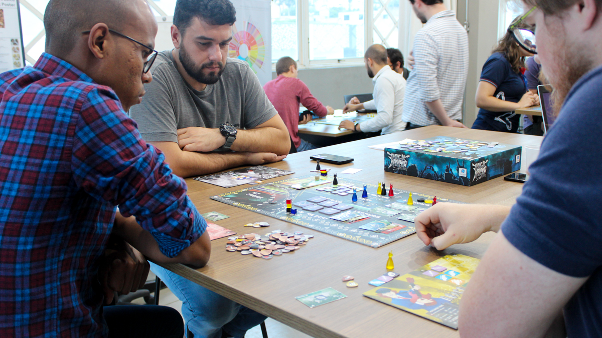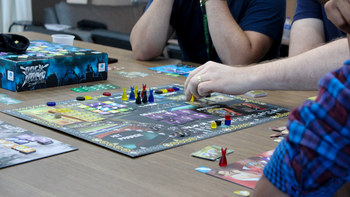Durante a oficina os participantes tiveram que aprender as regras e jogar o jogo de tabuleiro “Rock’n Roll Manager” de forma criativa estimulando suas capacidades de resolução de problemas e gestão de recursos para conseguir maximizar seus resultados.
