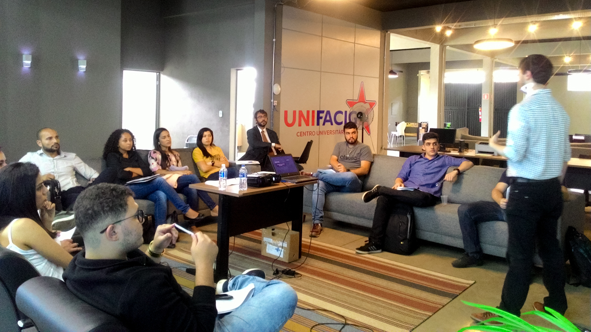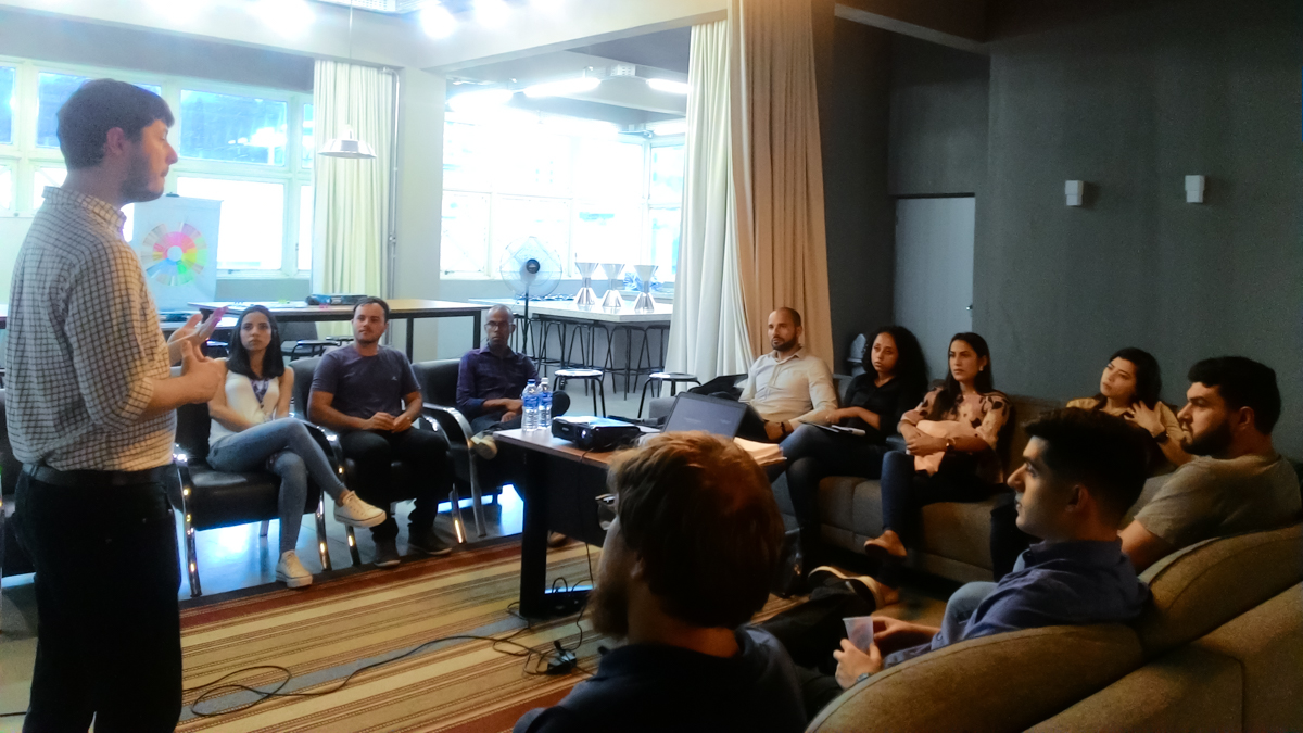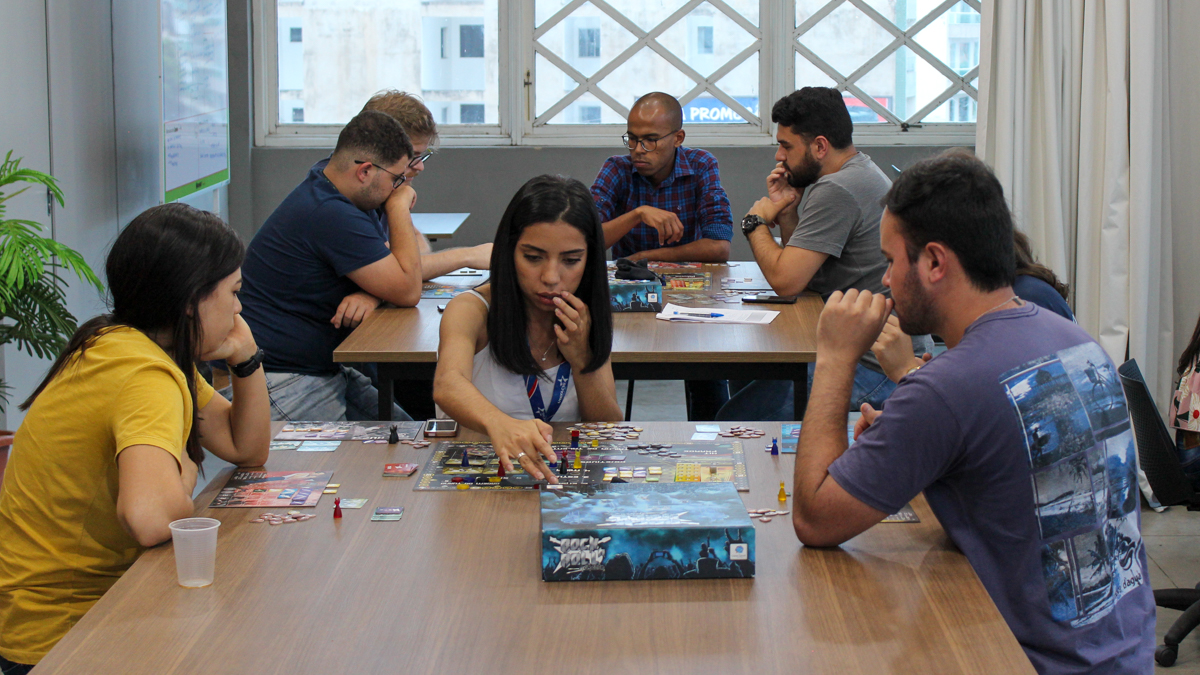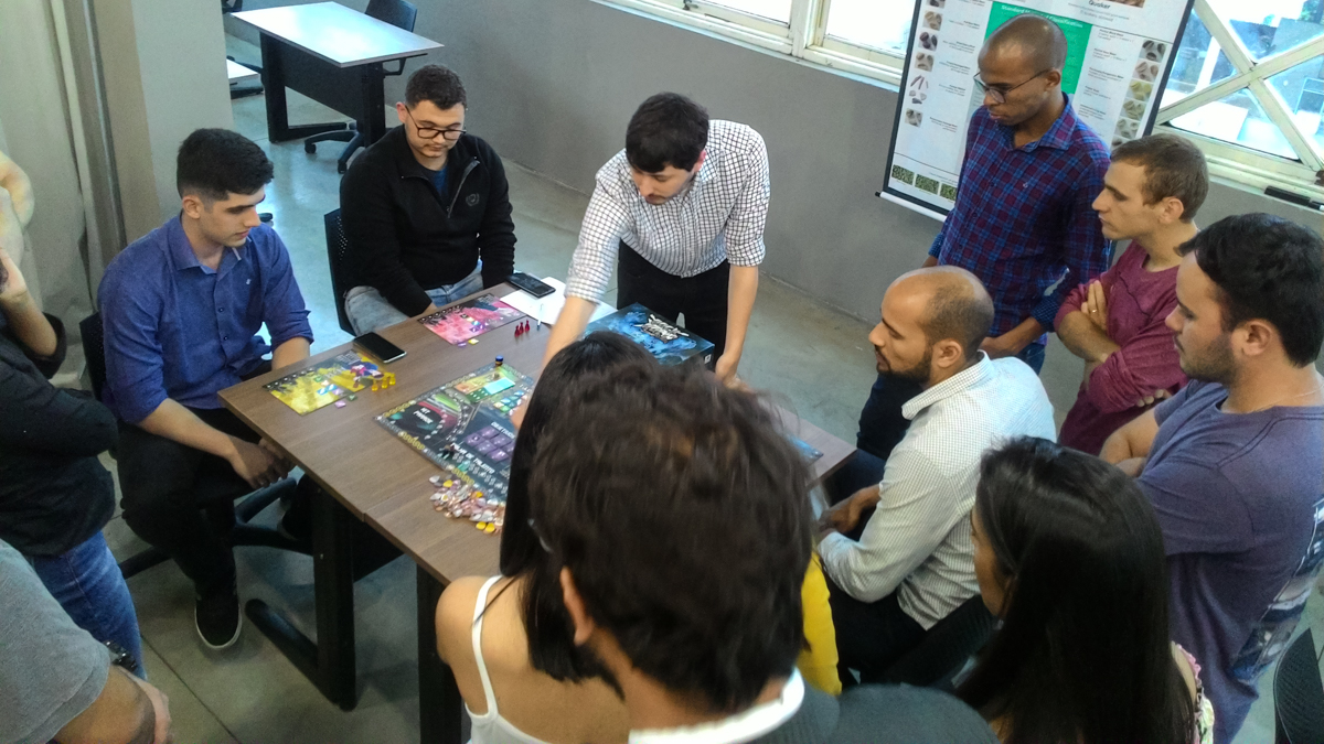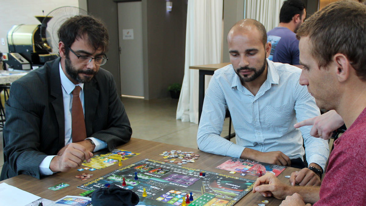Após um tempo de jogo prático houve um momento de troca de experiências e estratégias em que os participante puderam visualizar como aplicar os conceitos aprendidos no jogo em suas atividades profissionais e empreendedoras.