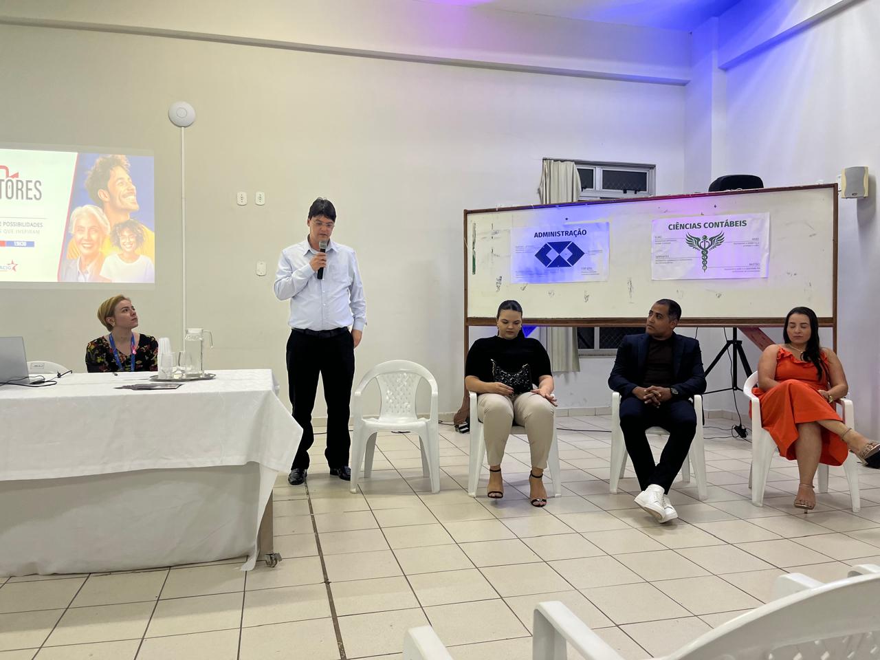 Na noite de segunda-feira (07/10), os cursos de Administração e Ciências Contábeis do UNIFACIG, que compõem a área de Gerenciais, realizaram mais uma edição do “Gestores em Foco” no Auditório do Campus Coqueiro. O encontro reuniu ex-alunos dos dos dois cursos, que compartilharam suas trajetórias profissionais e conquistas após a formatura, em uma conversa com os atuais alunos.