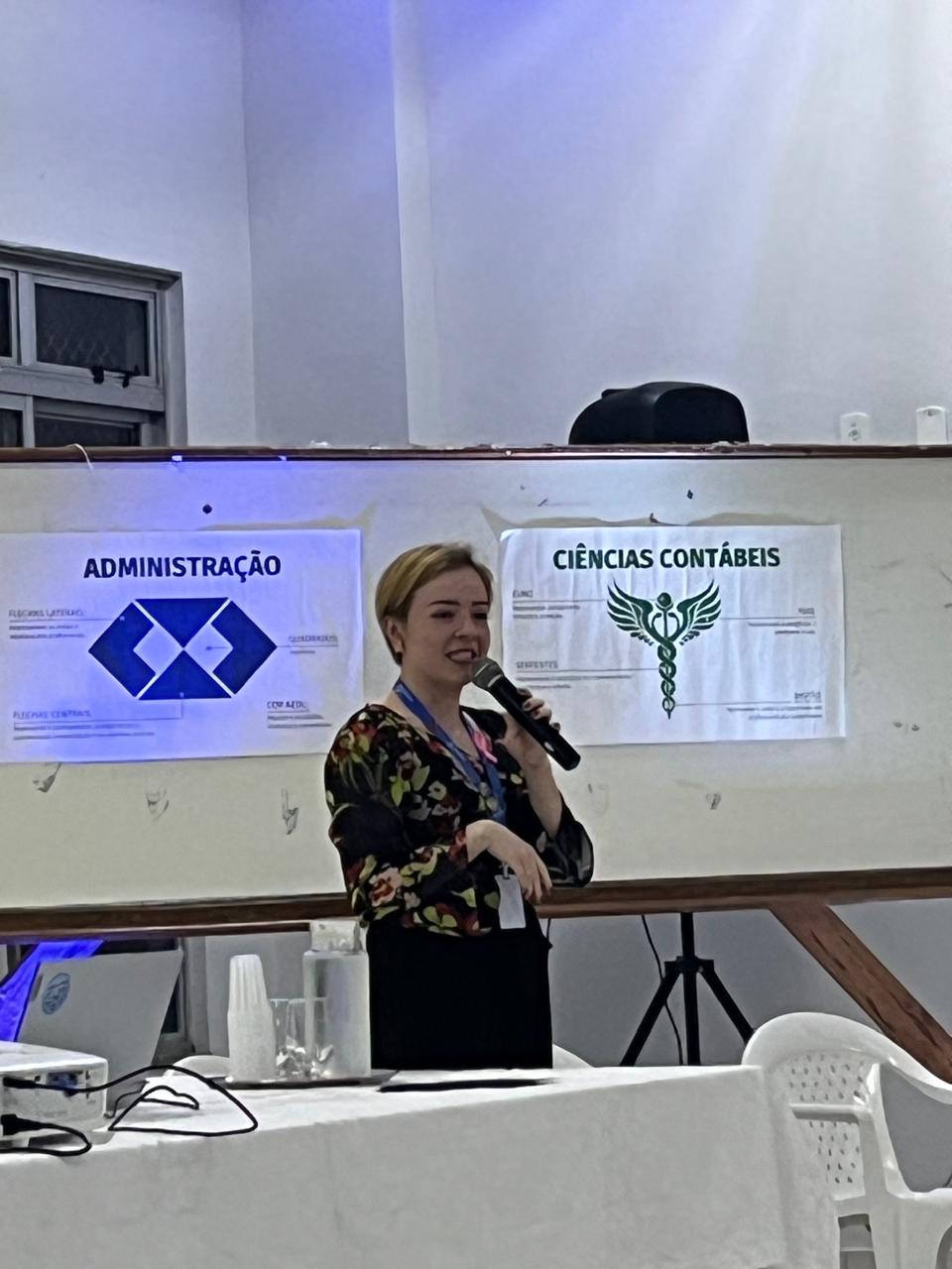Ela também ressaltou que Administração e Contabilidade caminham juntas, e que é importante os estudantes fazerem um planejamento de onde cada aluno deseja estar nos próximos cinco anos. “Hoje, o sucesso não se mede apenas financeiramente, mas também pela satisfação pessoal. Identificar seus valores e calcular os riscos são passos fundamentais para tomar decisões sobre o futuro. E, se necessário, não hesite em recalcular a rota e recomeçar”, completou.