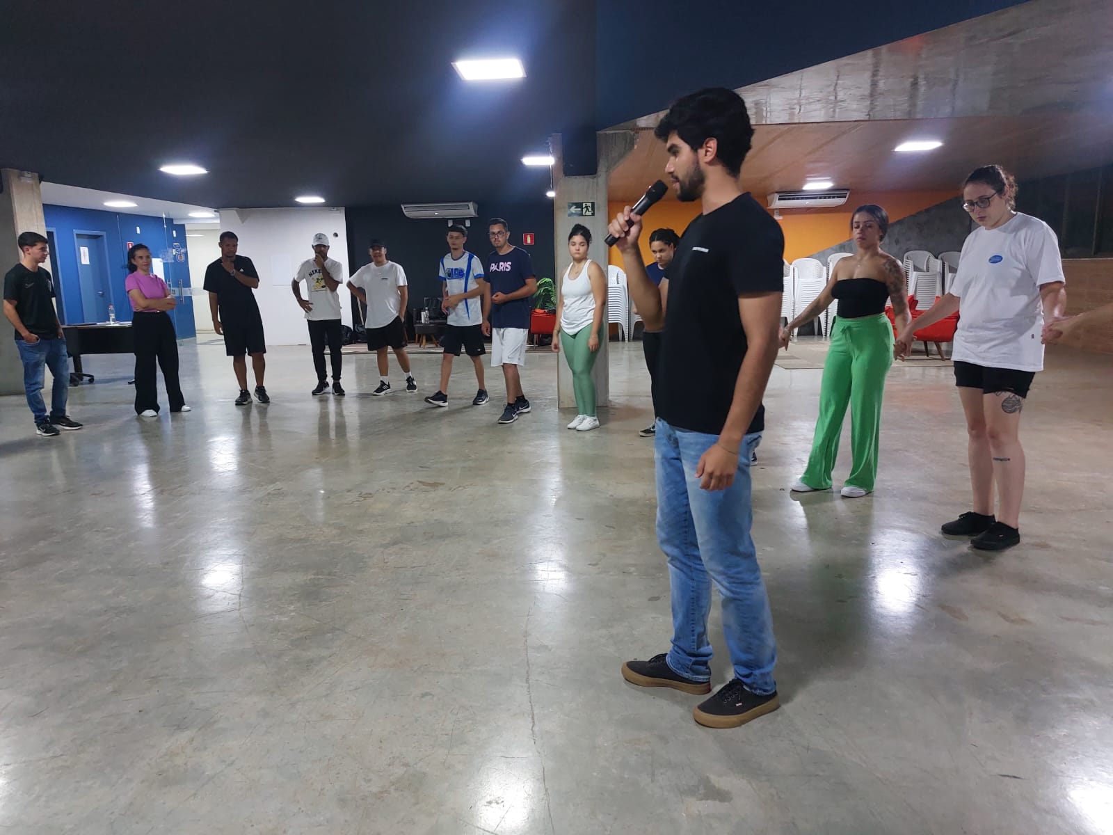 O minicurso contou com a presença especial dos professores Leonardo Enrique e Ester Lago, representantes do projeto Forrozear da Universidade Federal de Viçosa. Com suas experiências e vivências, eles enriqueceram as atividades, transmitindo não apenas a técnica, mas também a essência cultural da dança.