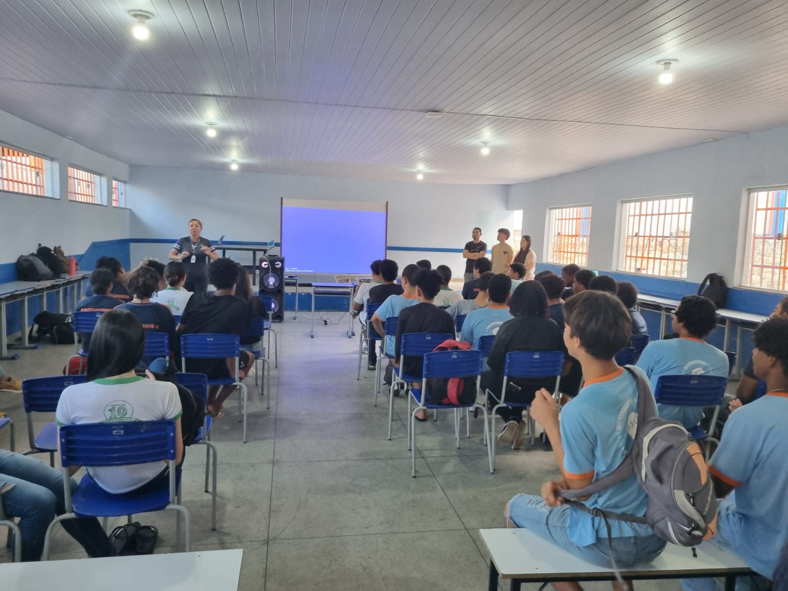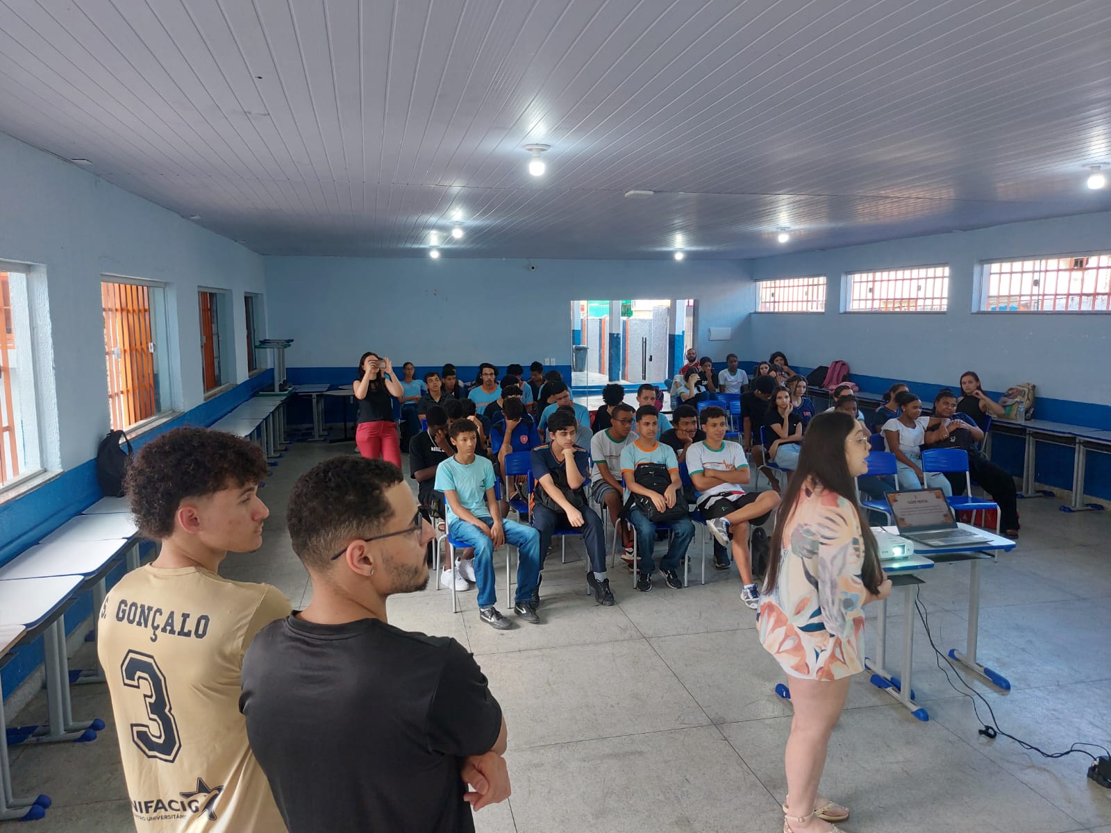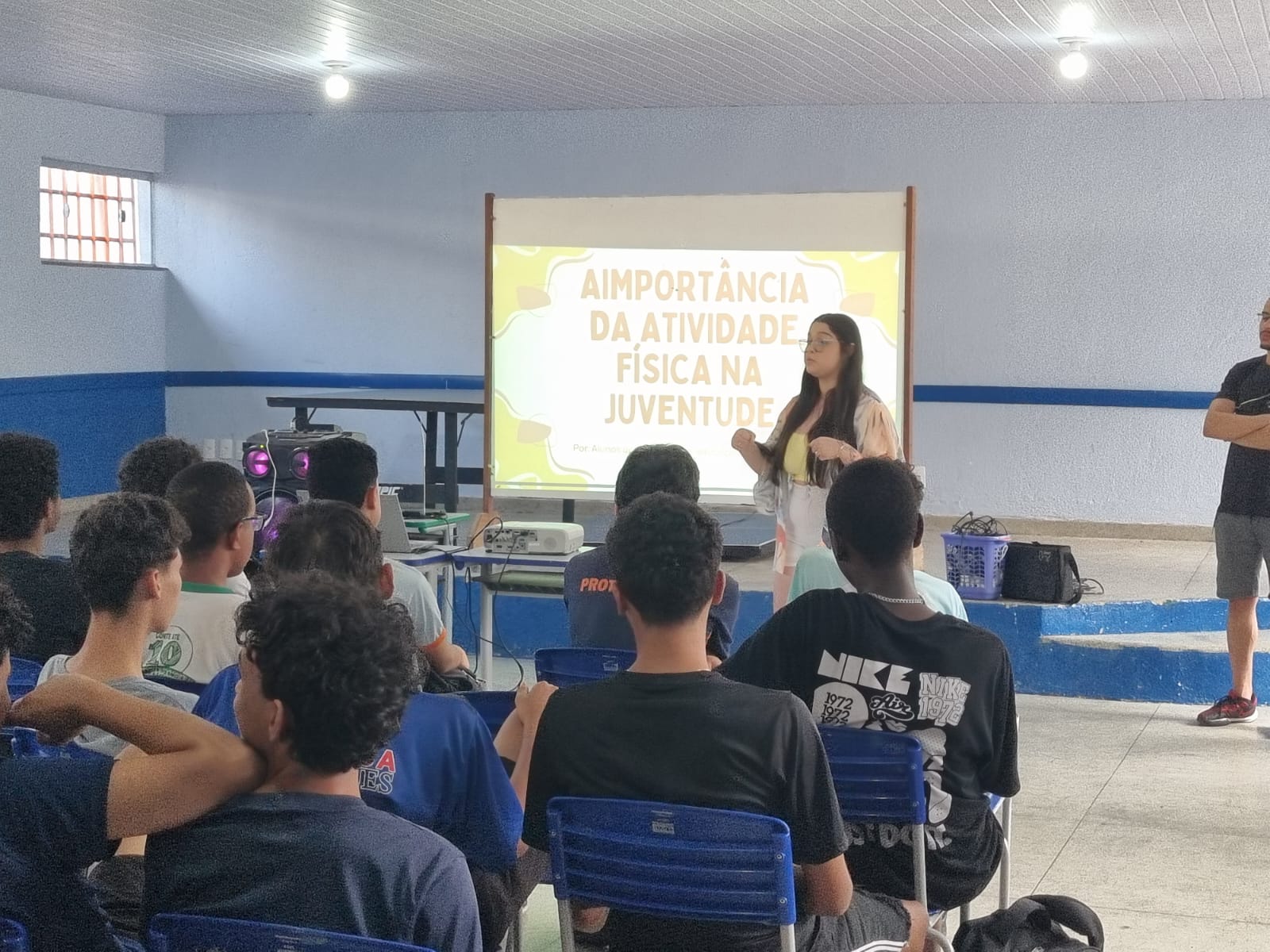 Durante o evento, os alunos conduziram uma palestra que abordou os inúmeros benefícios da prática regular de exercícios físicos na fase da adolescência, período crucial para o desenvolvimento físico e mental. Além disso, eles promoveram dinâmicas e atividades