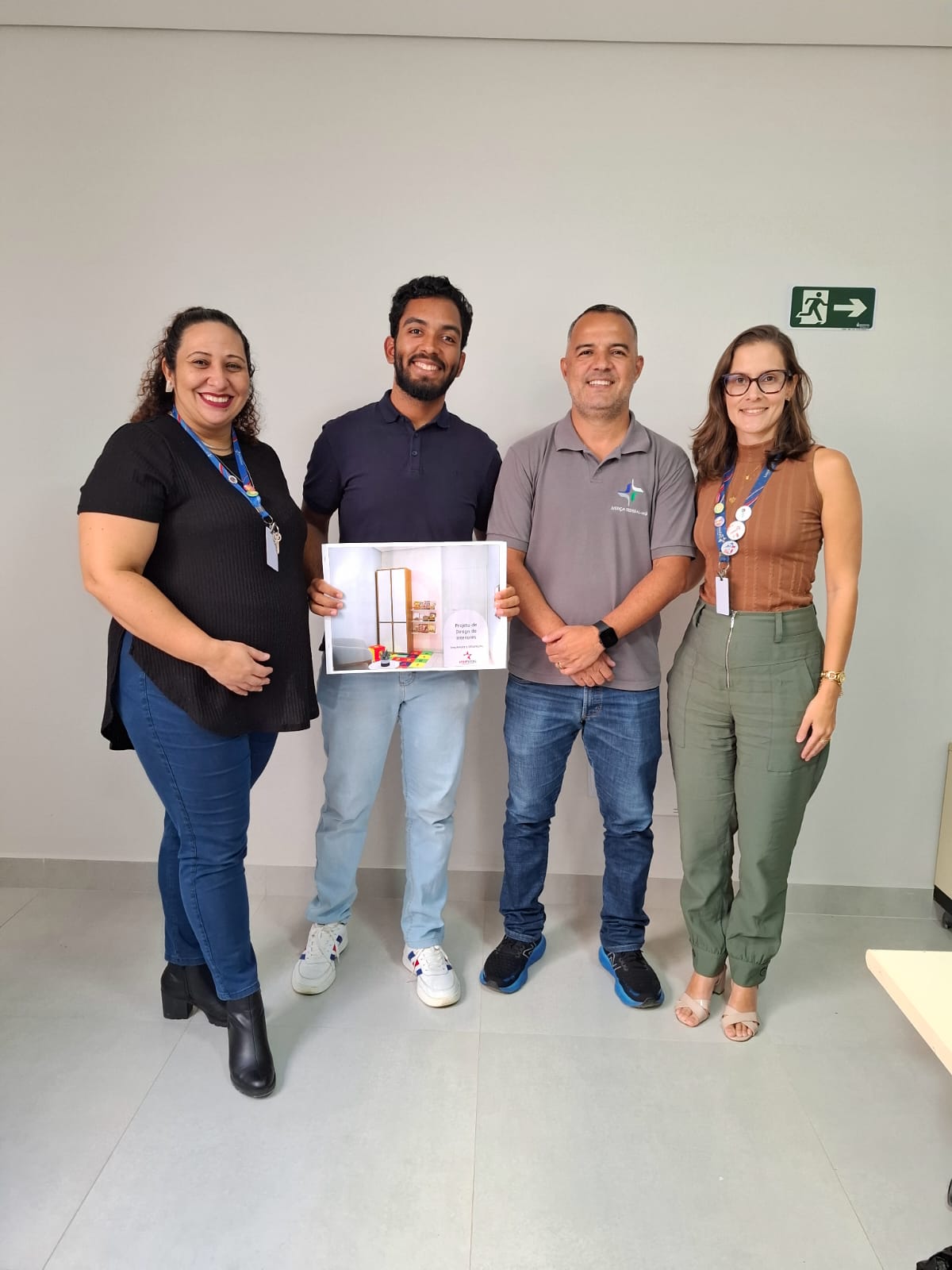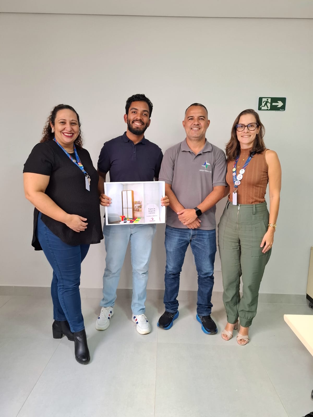 Na última quarta-feira (07/05), a Justiça Federal de Manhuaçu deu um passo importante em direção à inclusão e acessibilidade, com a entrega do projeto de interiores para uma sala de espera inclusiva, especialmente planejada para atender crianças com Transtorno do Espectro Autista (TEA). O projeto foi desenvolvido pelo aluno Avelino Horst, do curso de Arquitetura e Urbanismo, como parte de uma atividade de extensão extracurricular, sob a orientação das professoras Fernanda Cota, arquiteta e urbanista, e Karina Ferreira, fonoaudióloga.