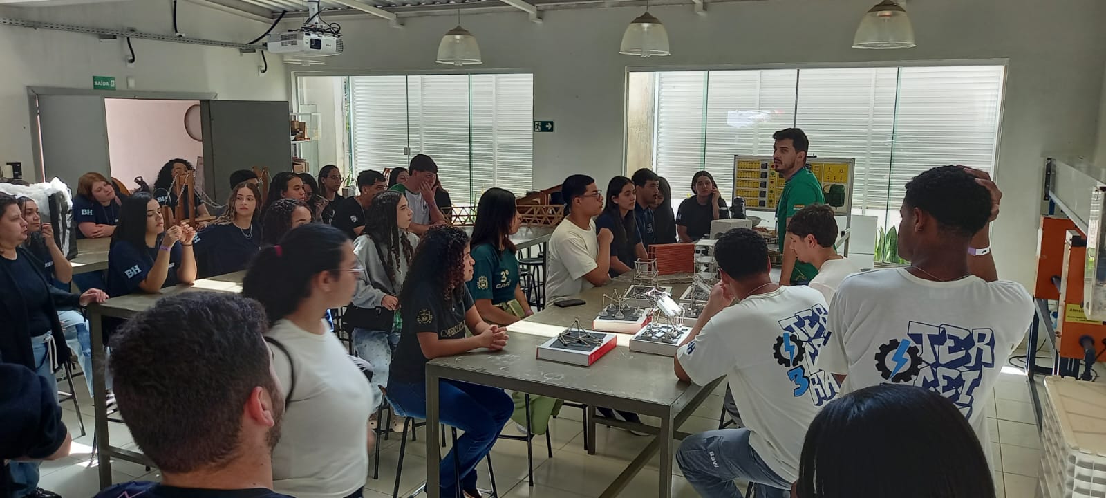 A participação dos coordenadores de curso e professores foi fundamental para enriquecer a experiência, contando também com o apoio de alunos do próprio UNIFACIG, que atuaram como guias e monitores, garantindo acolhimento e orientação para os grupos visitantes.