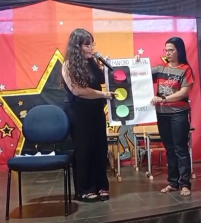Com o tema “Semeando gentileza, colhendo inclusão”, os acadêmicos realizaram uma apresentação teatral e uma exposição de cartazes, abordando de forma leve e sensível questões como o bullying e a importância do perdão. Durante o teatro, as crianças foram convidadas a refletir sobre como gestos simples podem transformar o convívio escolar e fortalecer laços de amizade e respeito mútuo.