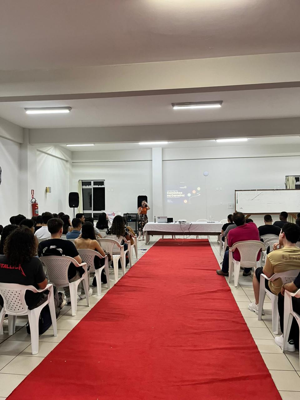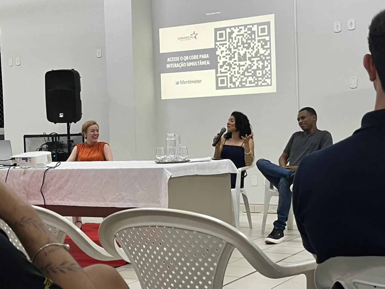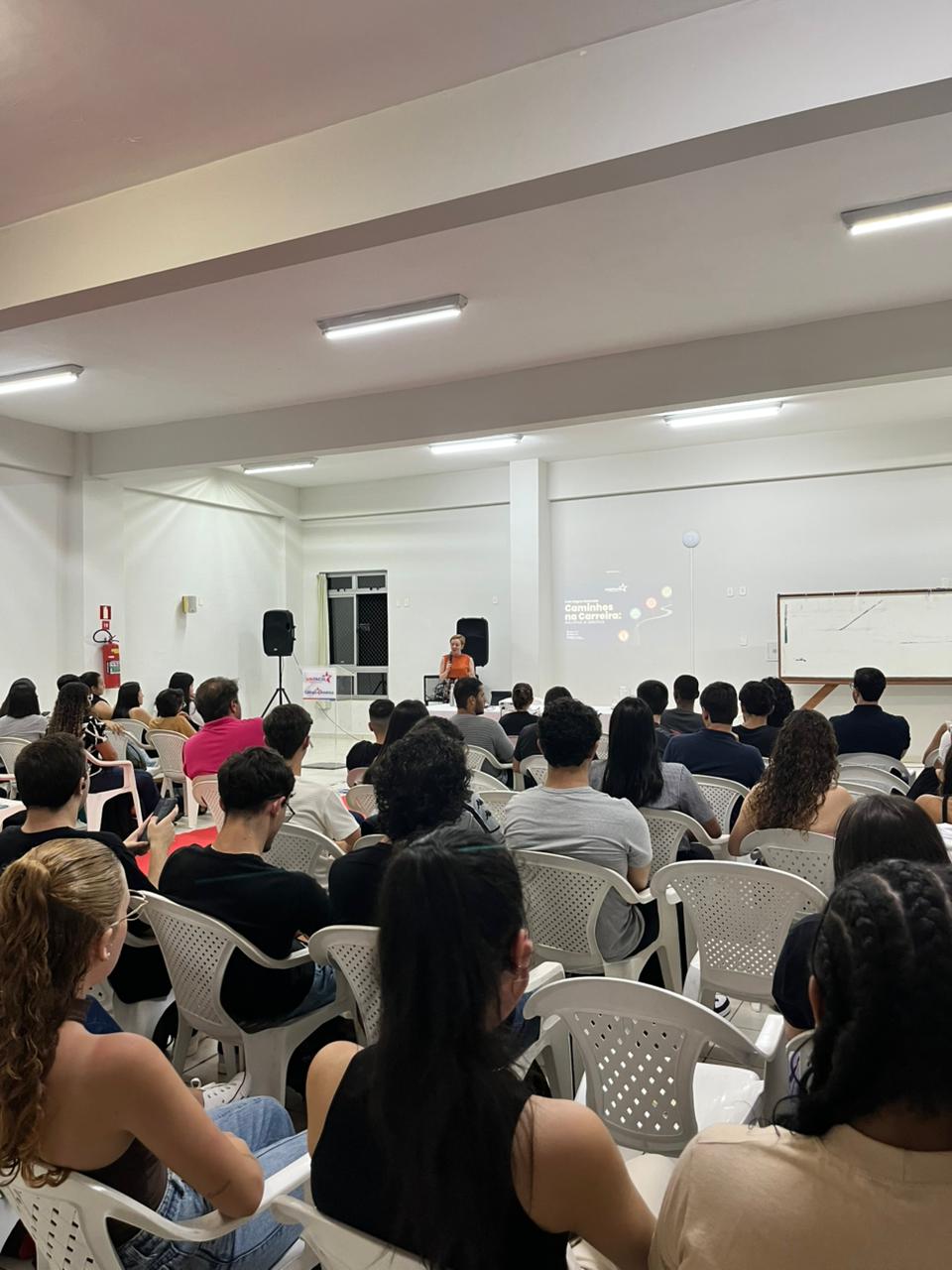 Após o diálogo entre os convidados, os estudantes tiveram espaço para perguntas, tornando o momento ainda mais enriquecedor. As dúvidas envolveram escolha de carreira, desenvolvimento de competências, expectativas profissionais e conselhos para quem está no início da graduação.