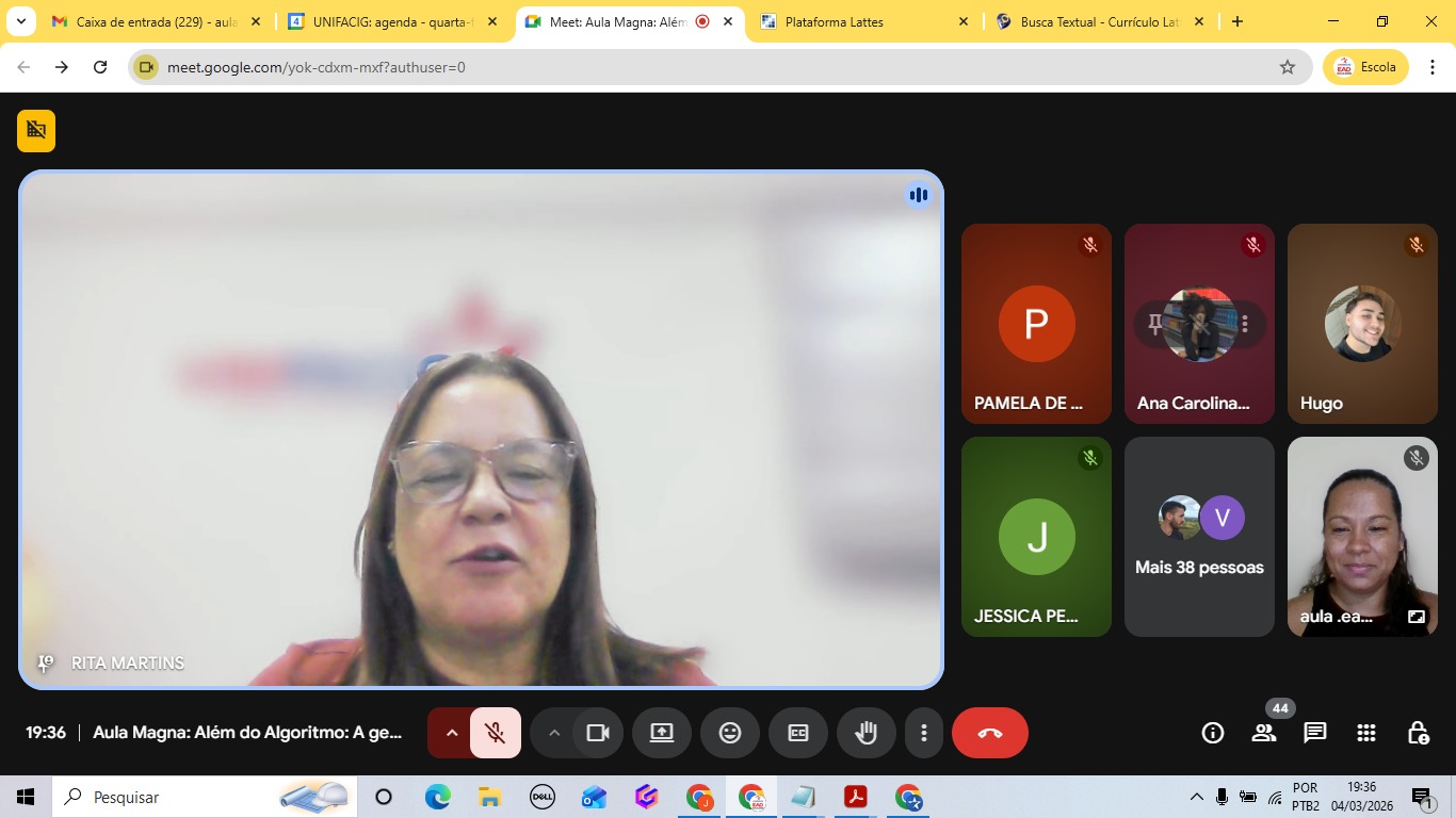 Realizado por meio da plataforma Google Meet, o evento reuniu estudantes do UNIFACIG Digital e membros da comunidade externa, que participaram ativamente da atividade, contribuindo com perguntas e comentários ao longo da transmissão.