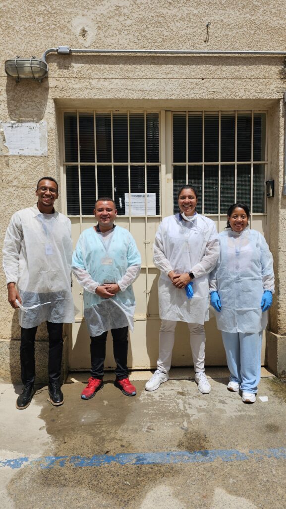 A visita também incluiu um encontro com o professor José Eustáquio, enfermeiro, professor, tanatopraxista, técnico em Anatomia e Necropsia e coordenador do curso de Tanatopraxia da Meritus Treinamento. Na ocasião, os visitantes tiveram a oportunidade de acompanhar o processo de preparação de um cadáver masculino proveniente do programa de doação de corpos, permitindo a observação prática dos procedimentos utilizados na preparação e conservação para atividades acadêmicas.