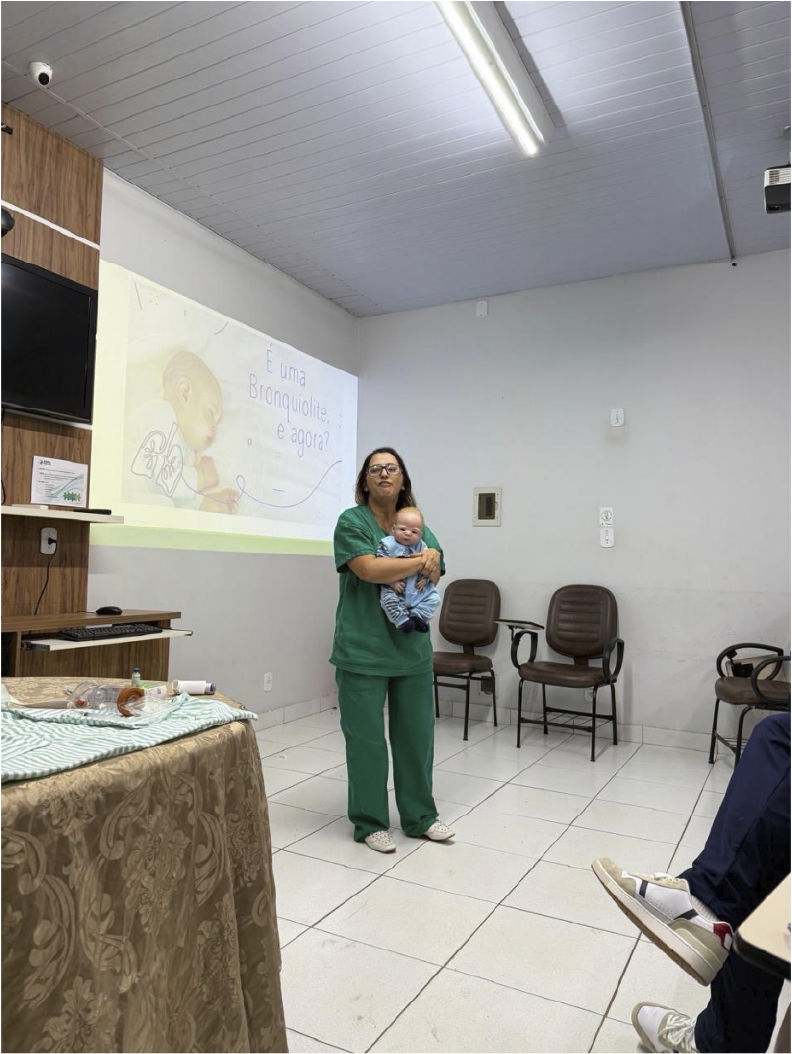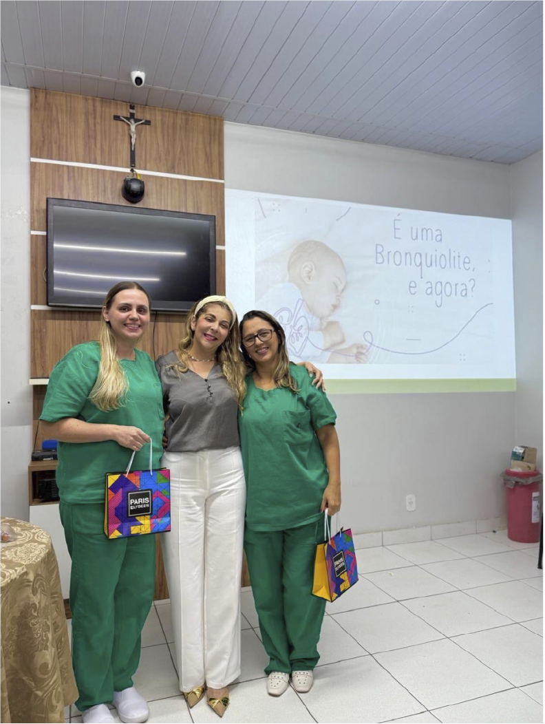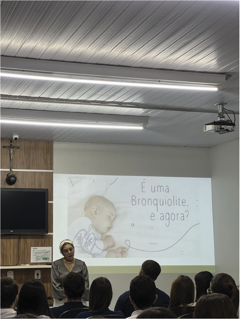 A palestra principal foi conduzida pela médica pediatra Dra. Gladma Rejane R. A. Silveira, que apresentou os aspectos clínicos e terapêuticos da bronquiolite, destacando as melhores práticas para o cuidado de pacientes pediátricos.